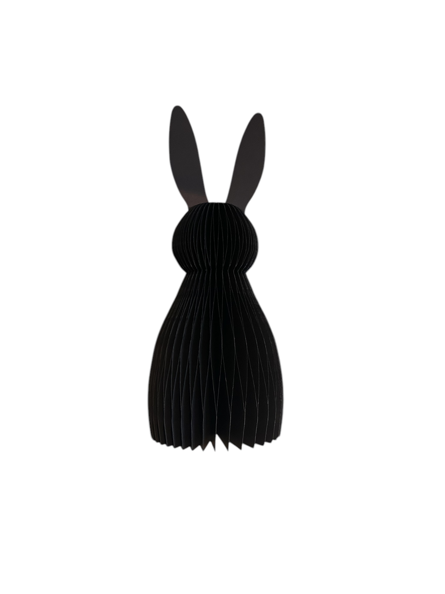 Met dit zwarte paashaasje van honeycomb papier geef je jouw paasdecoratie een tijdloze en luxe uitstraling. Bestel vandaag nog en zorg ervoor dat jouw Pasen dit jaar net even anders – en stijlvoller – wordt gevierd. Een prachtige toevoeging aan jouw feest, én gemakkelijk op te bergen voor volgend jaar!