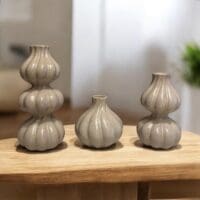Creëer direct warmte en sfeer in huis met deze stijlvolle kaarsenstandaard set in beige of een warme bruine/brique kleur. De set bestaat uit drie verschillende hoogtes van 10 cm, 15 cm en 20 cm, waardoor je eenvoudig een speels en elegant geheel kunt samenstellen. Perfect voor op tafel, een dressoir, vensterbank of salontafel.