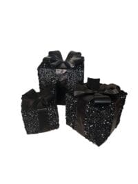 Voeg een vleugje luxe en feestelijke sfeer toe aan je interieur met de exclusieve glitter cadeauboxen met strik! Deze prachtige decoratieve boxen zijn niet alleen ideaal als cadeau, maar ook als stijlvolle blikvangers in elke woonruimte. Uitgevoerd met schitterende glitters en voorzien van subtiele LED-verlichting op batterijen, stralen ze warmte en elegantie uit, perfect voor de feestdagen en speciale gelegenheden.
