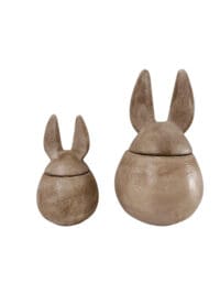 Wat deze paasdecoratie extra bijzonder maakt, is de nonchalante afwerking. Geen enkele pot is exact hetzelfde, waardoor je altijd een unieke set in huis haalt. De leuke konijnenoren op de deksels zijn niet alleen decoratief, maar ook praktisch: ze maken het openen van de potten eenvoudig.