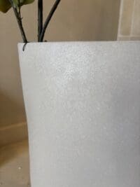 De combinatie van metaal en een zachte ivoor tint maakt deze platte vaas bijzonder veelzijdig. De lichte kleur reflecteert het daglicht mooi en draagt bij aan een frisse, serene sfeer in huis. De matte, ruwe afwerking geeft de vaas een ambachtelijke uitstraling en voorkomt dat het geheel te strak of kil wordt. Hierdoor past de vaas perfect binnen zowel moderne als natuurlijke interieurstijlen.