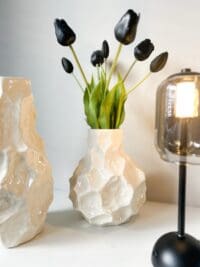 Deze vazen in beige komen het beste tot hun recht wanneer ze samen gecombineerd worden. De verschillende hoogtes creëren een speels en harmonieus effect, waardoor ze een echte eyecatcher vormen in elke ruimte. Gebruik ze met bloemen, droogbloemen, of als losse decoratiestukken – de mogelijkheden zijn eindeloos.