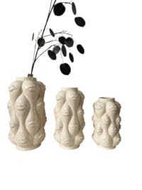 Deze bijzondere beige vaas met mondjes is verkrijgbaar in drie formaten, zodat je eenvoudig de juiste maat voor jouw ruimte kunt kiezen: