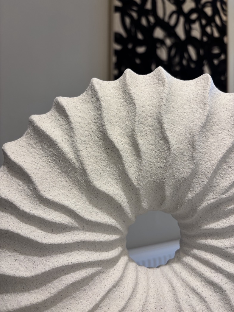 Deze vaas is vervaardigd uit hoogwaardig keramiek en afgewerkt met een fijne zandstructuur. Dit geeft de vaas een organische en natuurlijke uitstraling die zowel visueel als tactiel indruk maakt. Het matte oppervlak versterkt het luxueuze gevoel, terwijl de neutrale kleur moeiteloos te combineren is met diverse interieurstijlen, van modern minimalistisch tot Japandi en Scandinavisch.