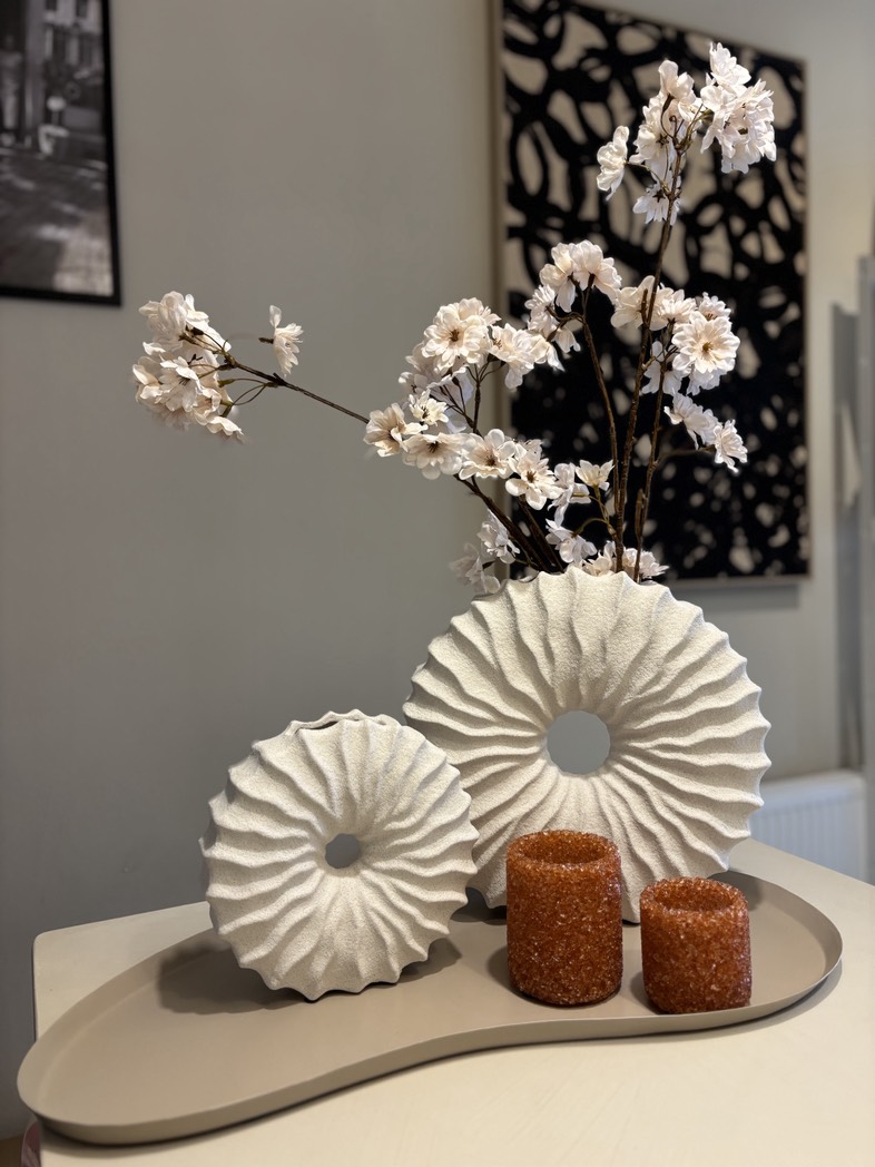 De neutrale kleur en natuurlijke textuur maken deze matte off-white vaas geschikt voor vrijwel elk interieur. Of je nu een modern, Scandinavisch, Japandi of bohemian chic interieur hebt, deze vaas voegt elegantie, balans en een subtiel luxe accent toe. Het organische ontwerp combineert prachtig met hout, linnen of keramiek.